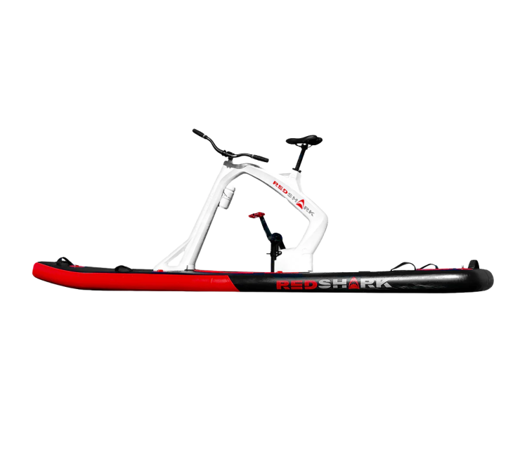Het lichtgewicht frame van de Red Shark Enjoy waterbike zorgt ervoor dat je nauwelijks weerstand hebt in het water, wat de fiets geschikt maakt voor lange tochten. Na het oppompen van het SUPboard en het bevestigen van het frame is je waterfiets klaar. Het gewicht is 12 kilogram en hij kost 2.999 euro, inclusief opbergtas.
