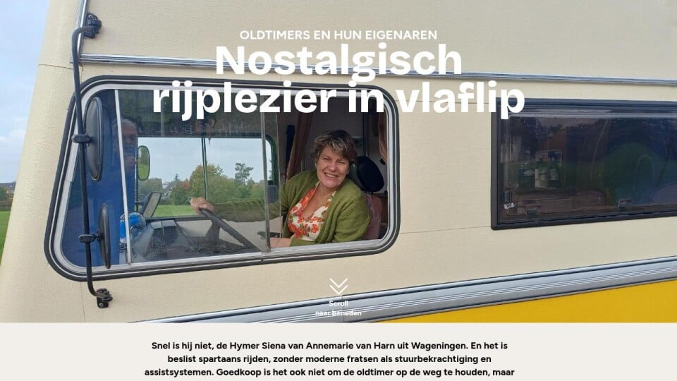 Snel is hij niet, de Hymer Siena van Annemarie van Harn uit Wageningen. En het is beslist spartaans rijden, zonder moderne fratsen als stuurbekrachtiging en assistsystemen. Goedkoop is het ook niet om de oldtimer op de weg te houden, maar de eigenaar wil er nooit meer vanaf.