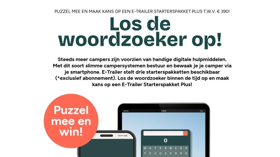PUZZEL MEE EN MAAK KANS OP EEN E-TRAILER STARTERSPAKKET PLUS T.W.V. € 390!