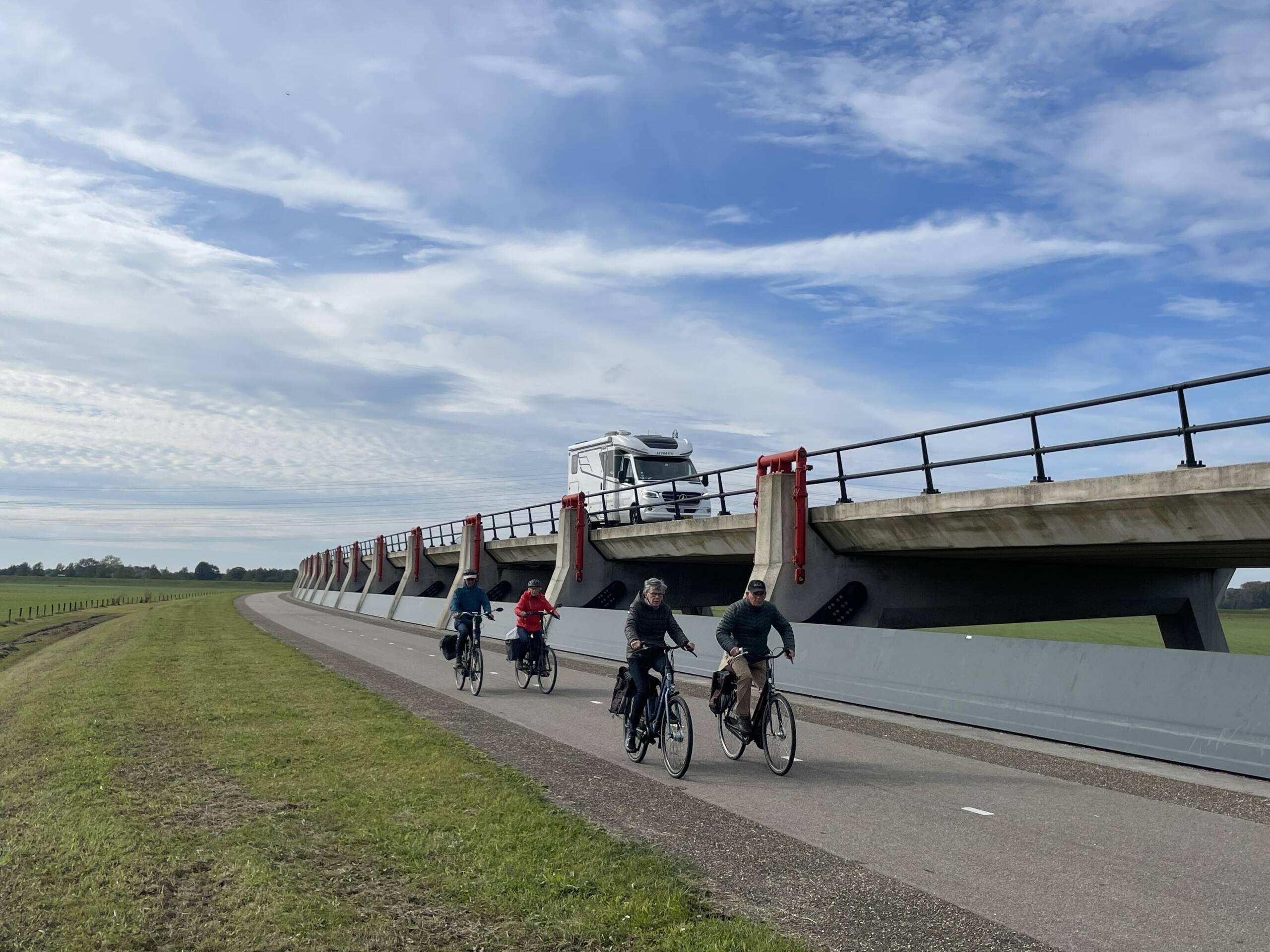 We pakken de fiets en rijden over het fietspad naar Wapenveld. Onderweg lezen we de verschillende infoborden en kijken rechts naast ons naar de landbouwgronden. Terug fietsen we deels langs de IJssel en zelfs nog door de hoogwatergeul, want momenteel dreigt er geen gevaar.